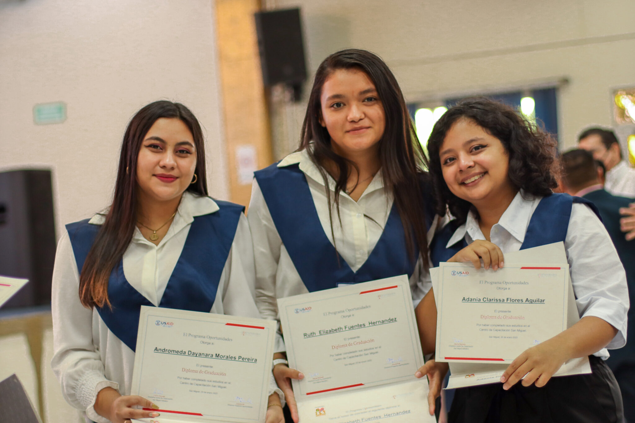 Un factor importante para lograr que la educación sea accesible para todos los sectores, especialmente los más vulnerables, es la capacidad que tienen las organizaciones para establecer alianzas, como es el caso del Programa Oportunidades, junto con el financiamiento de USAID, operan 4 centros de formación. El crecimiento del programa ha sido también posible gracias a la alianza firmada en abril del 2021 entre Oportunidades-FGK y USAID, el programa se ha expandido por todo el territorio nacional, en este mes de enero se gradúa la clase 2022, a quienes además se les entregan becas para su educación superior en la sede de Santa Ana a 74 jóvenes, en la sede de Sonsonate a 40, en la sede de San Miguel a 44 y en la sede de San Salvador a 97 jóvenes, totalizando 254 Ciudadanos Oportunidades que han completado su primera fase de formación académica y que continuarán sus estudios superiores.