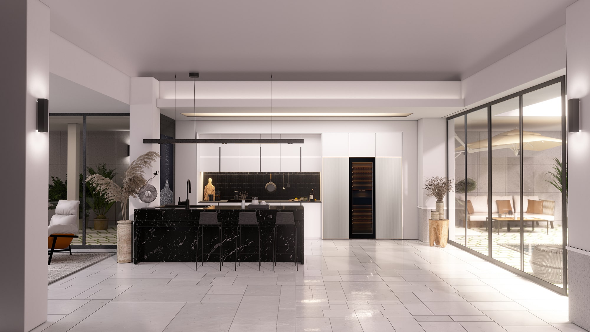 Aplicado al conducto y a la puerta, Black Metal Cooling no sólo crea una sensación de profundidad para un aspecto claramente premium, sino que también ayuda a mantener los alimentos frescos durante más tiempo al compensar rápidamente la pérdida de calor. Tunnel Lighting en el marco y estantes realza la estética a la vez que ofrece a los usuarios una visión clara de cada rincón de su refrigerador. El interior no sólo es llamativo, sino que también es espacioso. El refrigerador y el congelador tienen una capacidad combinada de 805 litros, 2 mientras que la bodega ofrece espacio para almacenar hasta 101 botellas.